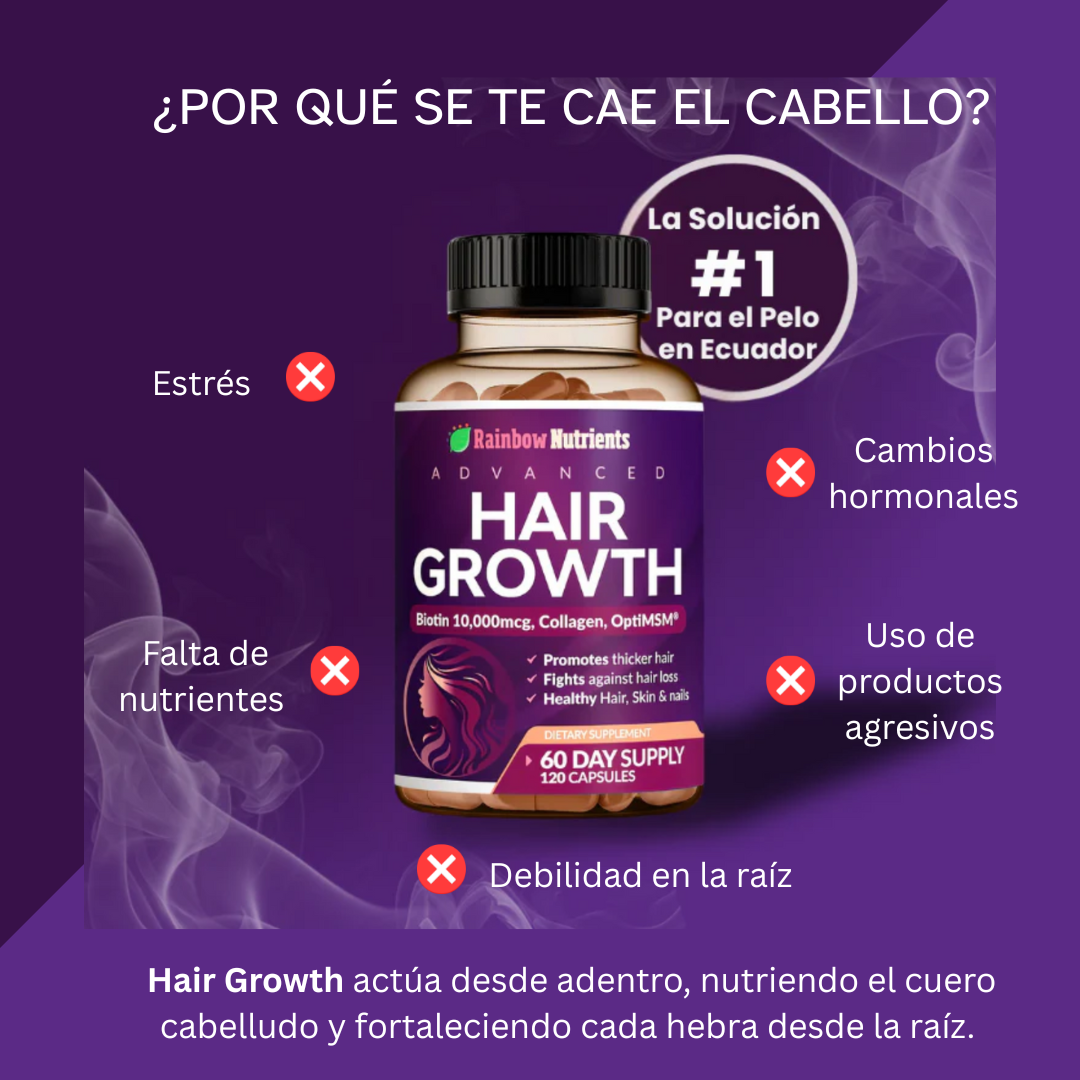Con biotina y colágeno, Hair Growth es una opción práctica y sencilla para acompañar tu rutina de bienestar capilar.